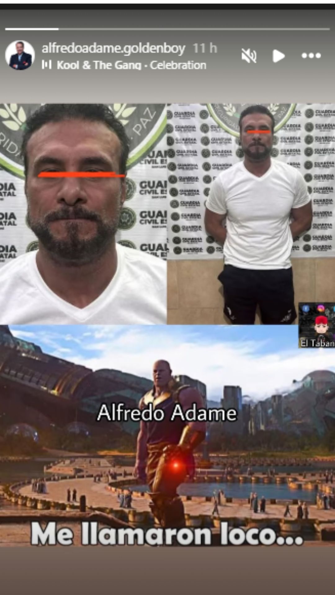 "Me llamaron loco", escribió sobre una fotografía del arresto de Alberto del Río y una imagen de Thanos, personaje de ficción de Marvel.