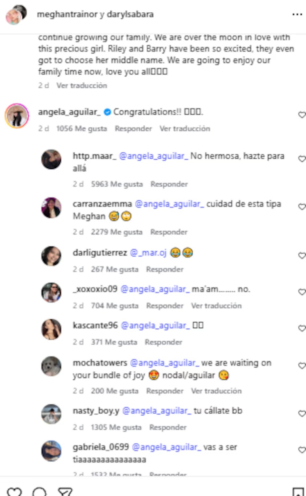 La presión mediática y la humillación pública fueron tales que, para la madrugada de este viernes, el comentario de la menor de la dinastía Aguilar desapareció por completo. Al parecer, la intérprete de 'Qué Agonía' prefirió aplicar la de "aquí no pasó nada" y eliminó su rastro de la publicación de Meghan Trainor. Para los expertos en redes sociales, este movimiento solo confirmó que Ángela no pudo con el hate. ¿Será que algún día el público le perdonará su accidentada historia de amor o está condenada a ser la "villana" de cada nacimiento famoso?