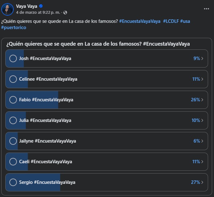 Como ya es costumbre para los verdaderos 'pajaritos' del chisme, nuestro querido Gerardo Escareño de 'Vaya Vaya' ha lanzado sus encuestas predictivas. Aunque nada está escrito hasta la gala del lunes, estos números suelen ser un termómetro muy exacto de la voluntad popular: