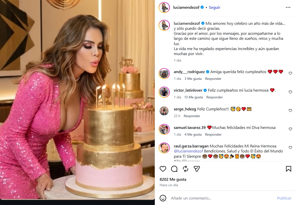 Este 26 de enero, la industria del espectáculo se volcó en felicitaciones para Lucía Méndez. La actriz, que ha sido nuestra 'Colorina' y 'Diana Salazar', festejó un año más de vida consolidada como una de las leyendas vivas más importantes de la televisión. Con un mensaje lleno de gratitud, Lucía escribió: "Mis amores hoy celebro un año más de vida… gracias por el amor, por acompañarme en este camino lleno de sueños y mucha luz". Pero, la luz no fue lo único que brilló en esa publicación.