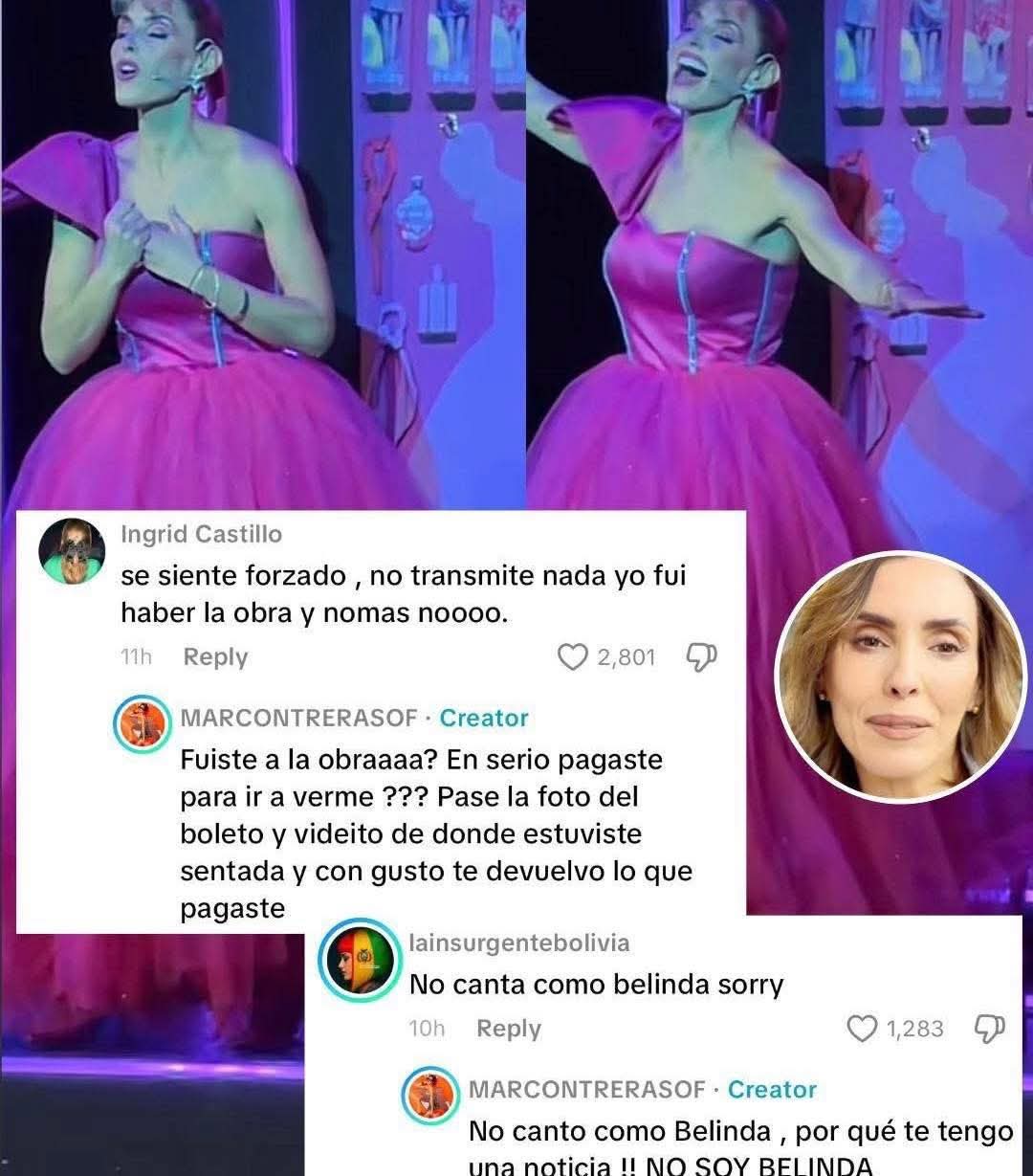La respuesta más explosiva ocurrió cuando una usuaria le dijo que había pagado mucho y se había decepcionado. Mar Contreras lanzó un reto: si podía comprobar con videos y fotografías de su boleto que asistió a la función, ella misma se encargaría del reembolso. La actriz compartió un video en TikTok antes de subir al escenario, donde se concentraron la mayoría de las críticas.