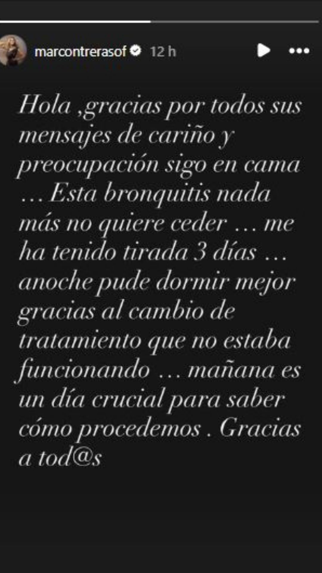 Mar Contreras pide oraciones y revela que los siguientes días serán cruciales para su salud