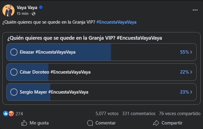 Los nominados de la semana son Eleazar, Sergio y Teo. Según la encuesta más reciente de 'Vaya, Vaya' y el análisis de tendencias en redes sociales, la votación está sumamente dividida. El público está priorizando el carisma y la estrategia, dejando en zona de riesgo a un participante que ha generado poca conexión emocional con el fandom. Eleazar Gómez ha logrado consolidar su base de apoyo esta semana, gracias a una estrategia que lo ha posicionado como favorito para la final.