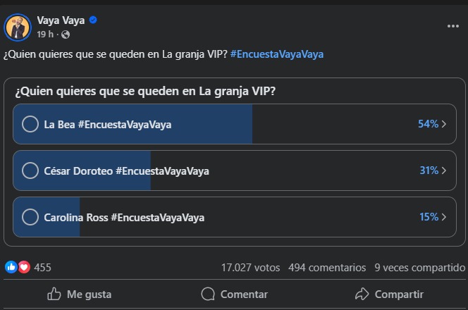 Aunque los resultados oficiales del reality solo se sabrán hasta el domingo 19 de octubre de 2025, una encuesta clave en el sitio de Facebook 'Vaya Vaya' ha ofrecido un panorama claro sobre la intención del voto de la audiencia de 'La Granja VIP'. Conocida por sus datos certeros en 'La Casa de los Famosos México', el creador Gerardo Escareño ha comenzado a escalar encuestas sobre el reality show de Tv Azteca.